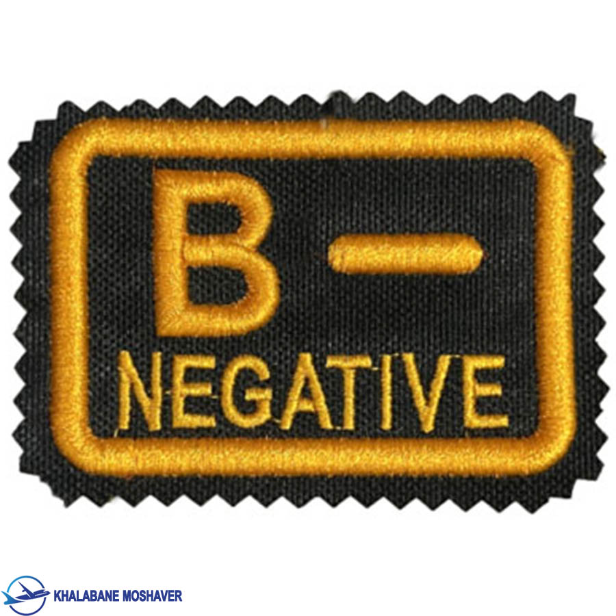 آرم بازو گروه خونی B منفی زمینه مشکی با کیفیت بالا و گلدوزی دقیق مناسب برای نصب بر بازو انواع لباس های نظامی نیروهای مسلح.
