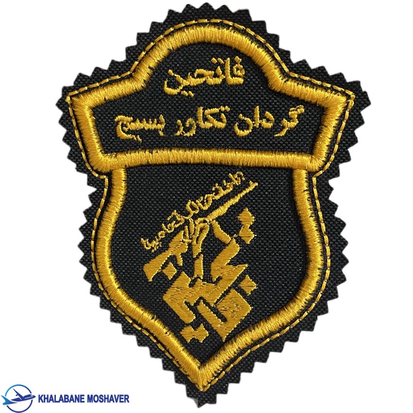 آرم بازو گردان تکاور بسیج بسیج سپاه پاسداران جمهوری اسلامی ایران با کیفیت بالا و گلدوزی دقیق مناسب برای نصب بر بازو انواع لباس های نظامی نیروهای مسلح.
