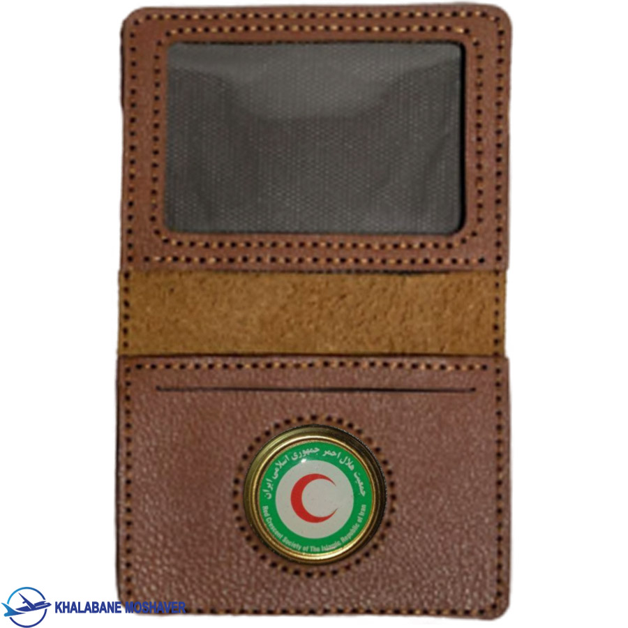 کیف کارت شناسایی و جاکارتی هلال احمر به رنگ قهوه ای، دارای آرم مصوب فلزی مناسب برای پرسنل محترم هلال احمر.
