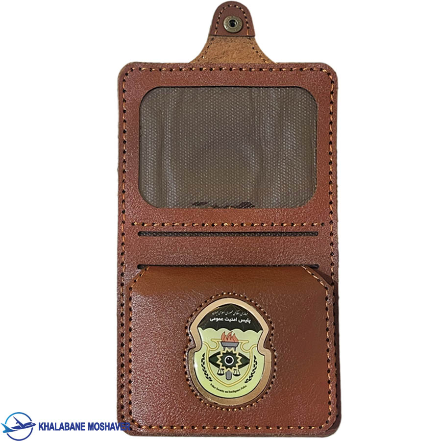 کیف کیف پول نظامی به رنگ مشکی و قهوه ای، دارای آرم مصوب فلزی مناسب برای پرسنل محترم امنیت عمومی فراجا.