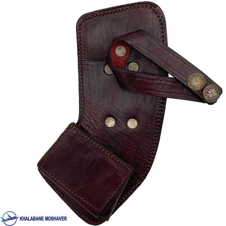 غلاف شوکر چرمی مدل سرکج (خرچنگی) با کیفیت دوخت عالی، دارای دکمه محکم فلزی برای نگهداری اسپری، با قابلیت نصب در کنار تجهیزاتی نظیر جلد کلت کمری بر کمربند تجهیزات نظامی، مناسب برای پرسنل محترم نیروهای نظامی، انتظامی و حراستی.