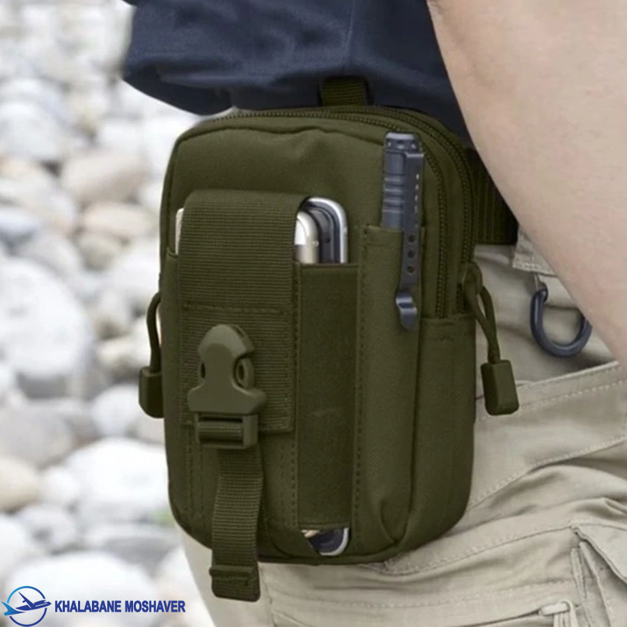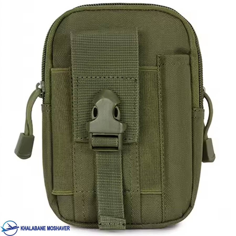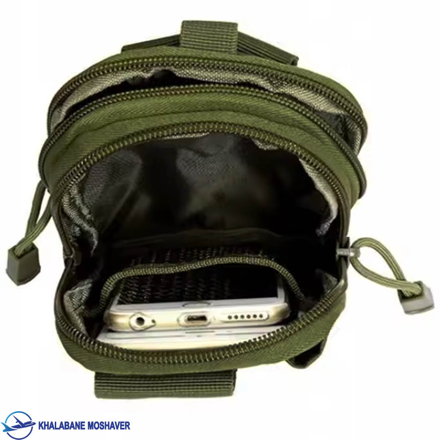 کیف کمری تاکتیکال برزنتی به رنگ سبز مناسب برای حمل پول و کارت و موبایل و چاقو و… با قابلیت نصب بر روی کمربند های تاکتیکال و 5.11 با مقاومت فراوان.